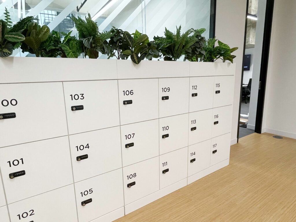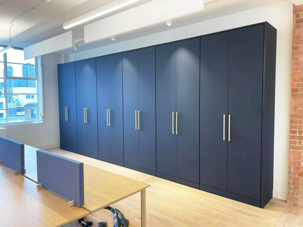 Flexible Office Furniture & Interiors can supply and install lockers as part of our range of bespoke wall storage solutions. With a variety of sizes, configurations, and finishes available, we can provide the perfect locker solutions to optimise your space and enhance organisational efficiency. Our commitment to quality ensures that each locker is built to withstand daily use while maintaining a sleek and professional appearance.