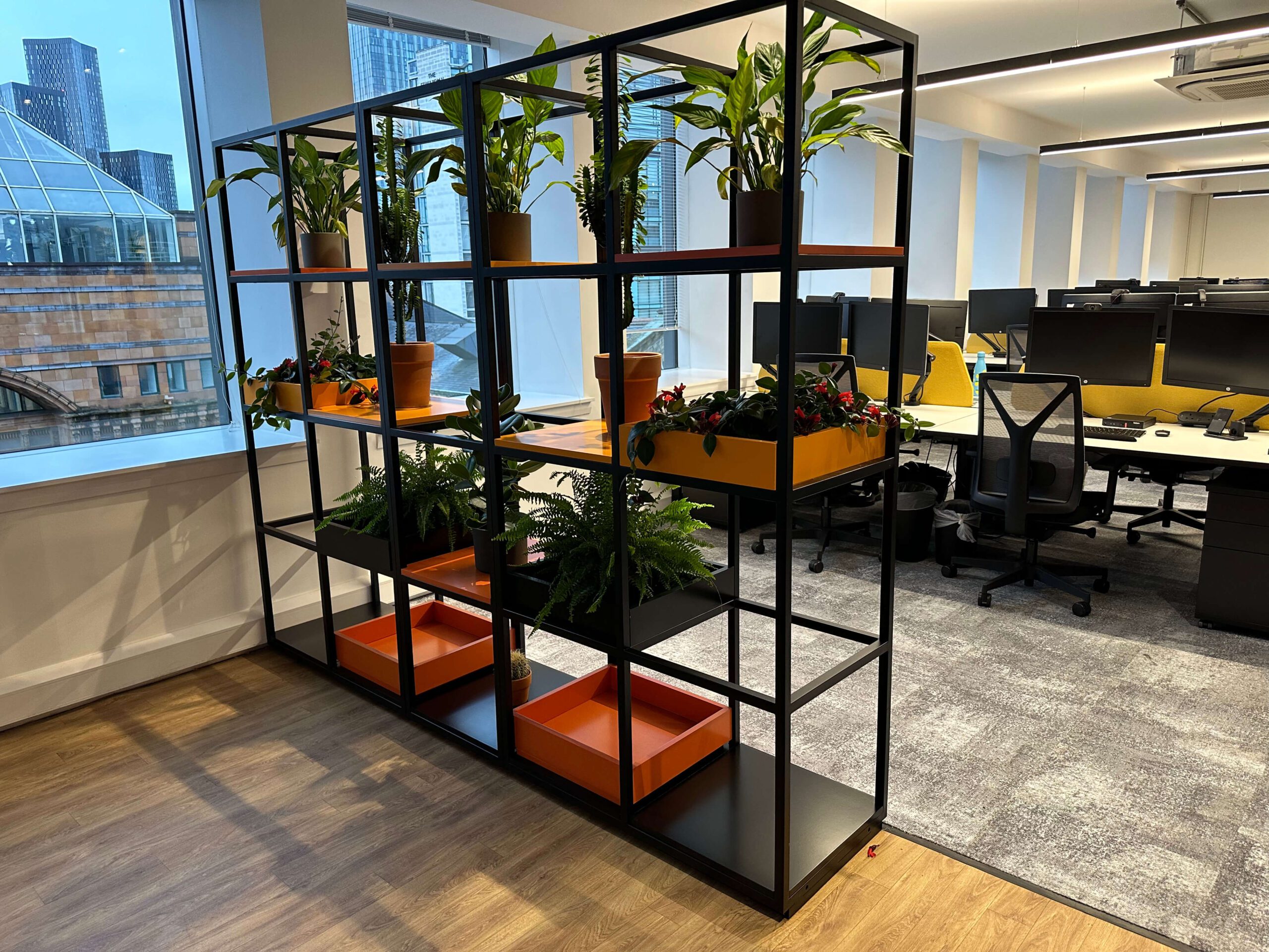 As part of our interior design and planning services, the creation of ‘zones’ can help segment your space to ensure that your employees have the working environment they need to be productive. The QB Zoning Systems we can supply not only help these zones be created, but also provide an attractive open storage solution which can be customised to suit your needs.